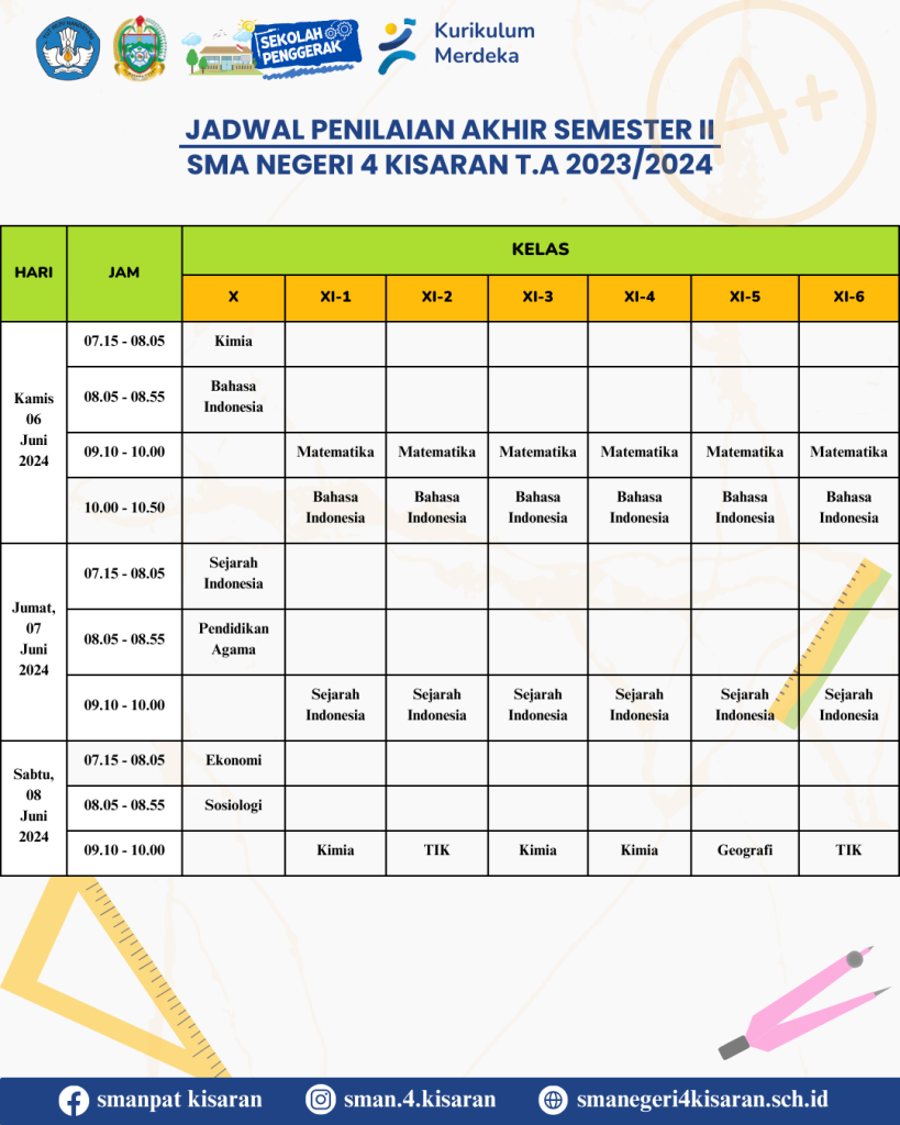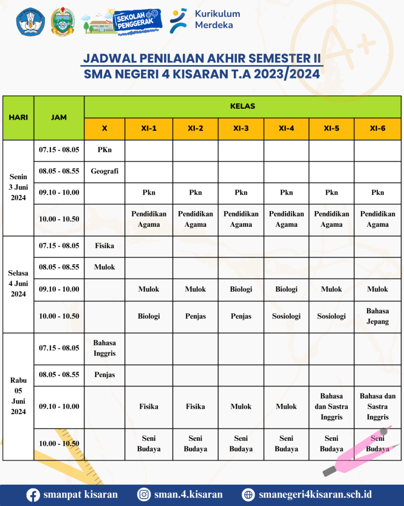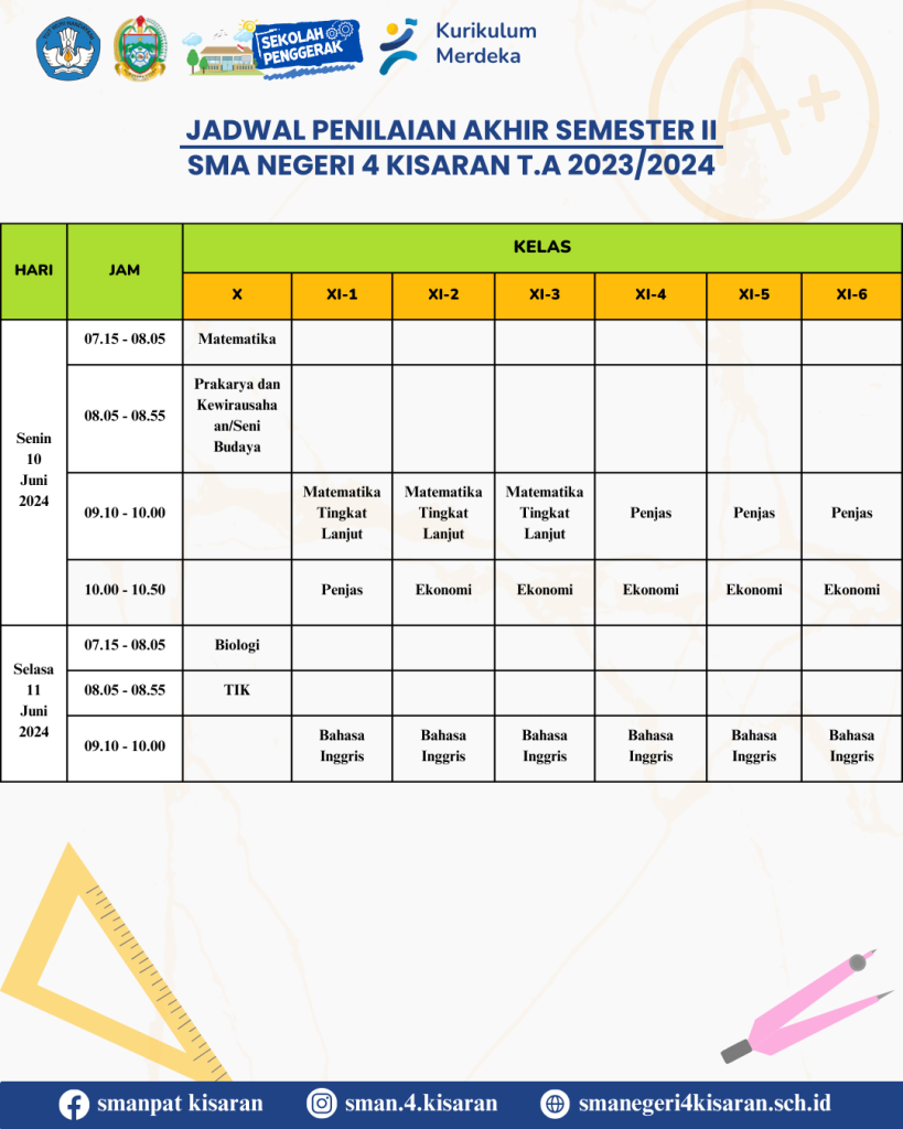 Kali ini Kamin mau kasih info Jadwal Penilaian Akhir Semester kamu nih..